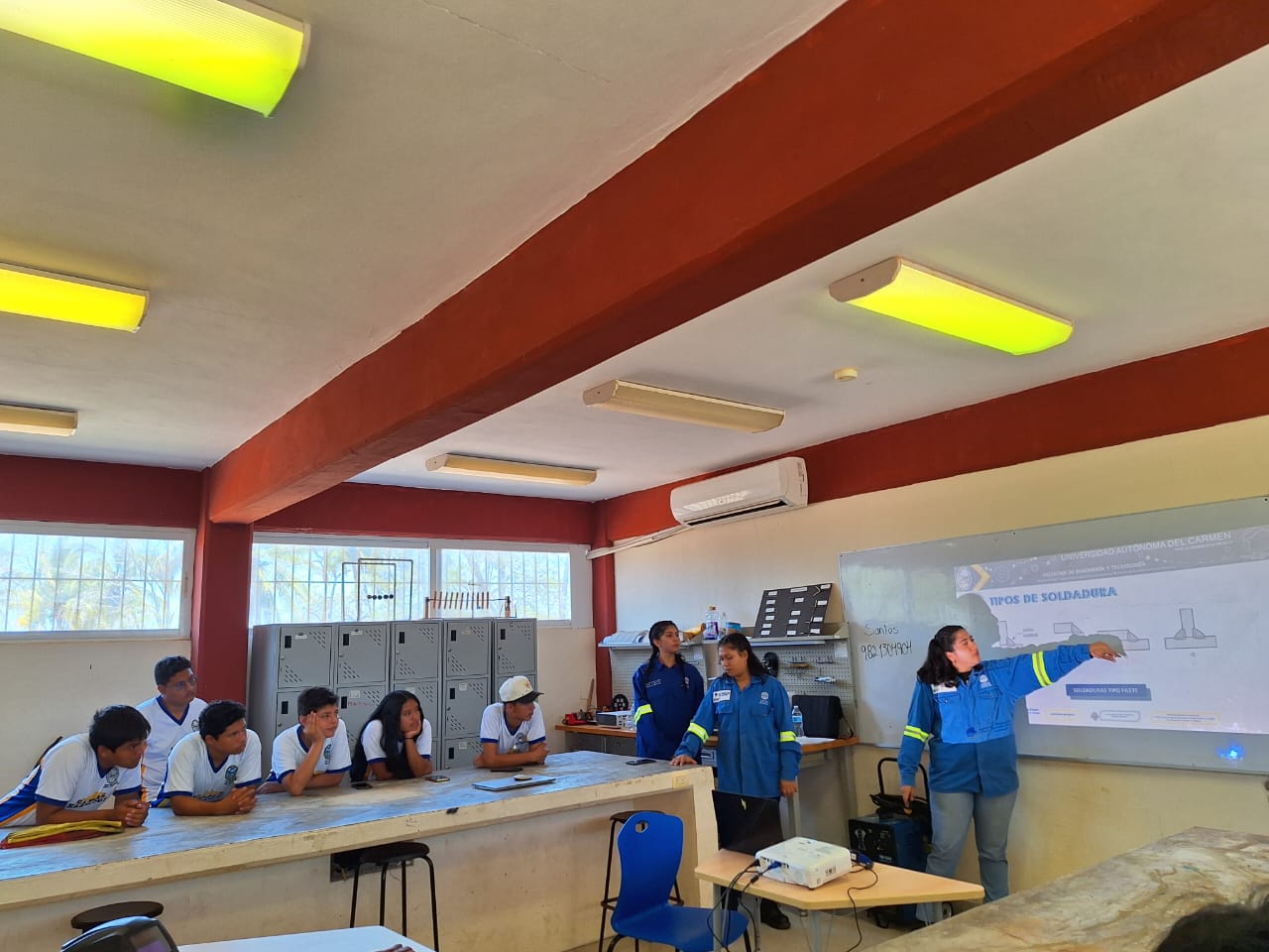El pasado 31 de mayo los alumnos de Ingeniería Mecánica, liderados por la Dra. Gabriela Pedraza Basulto y MC. Jorge Herrera Castillo, integrantes del Cuerpo Académico UNACAR 046 “Diseño, integridad y Eficiencia Energética” y la Academia Transdisciplinar de Mecánica, compartieron conocimientos a los estudiantes de los grupos A, B y C de cuarto semestre sobre Tópicos básicos en Ingeniería Electrohidráulica, mantenimiento básico de Bombas Periféricas y Fundamentos teóricos y prácticos para Procesos de Soldadura (SMAW) bajo criterios de evaluación y aplicación (AWS).
